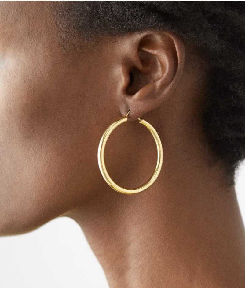 | Description: | 18kt Gold plated sterling silver large gypsy hoop earrings, approximately 40mm diameter. |
