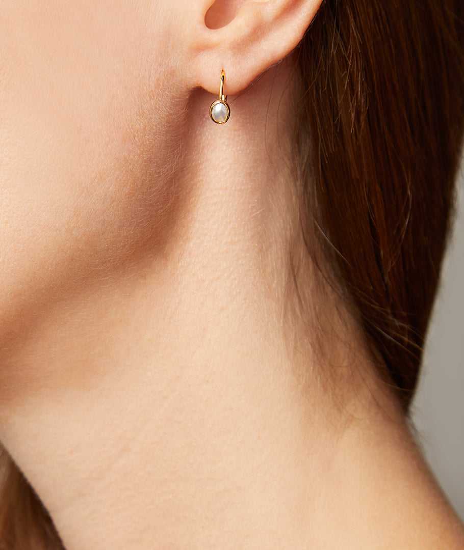 | Description: | 18kt Gold plated sterling silver pearl earrings, hoops approximately 13mm diameter. |